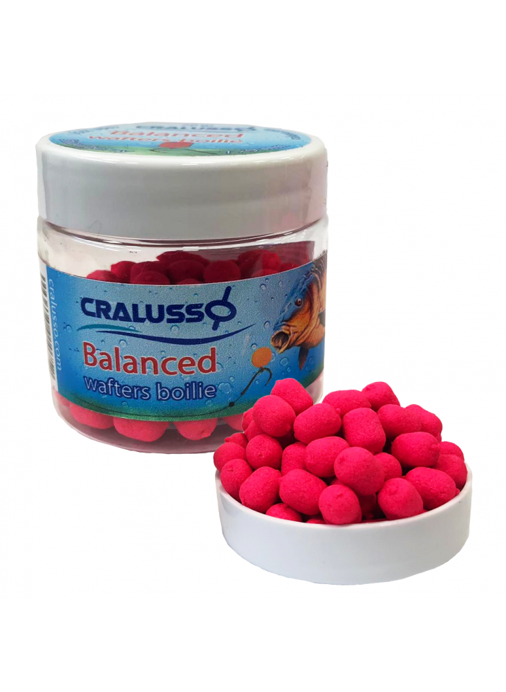 Cralusso Balanced Wafters – ryškios spalvos balansuojantys wafteriai. Pailgos formos, puikiai tinka prie kabliuko tvirtinti gumyte arba gražteliu. Natūralus kvapas. Puikiai tinka Method Feeder žvejybai. Puikus masalas karpių, karšių lynų ir kitu žuvų žūklei.