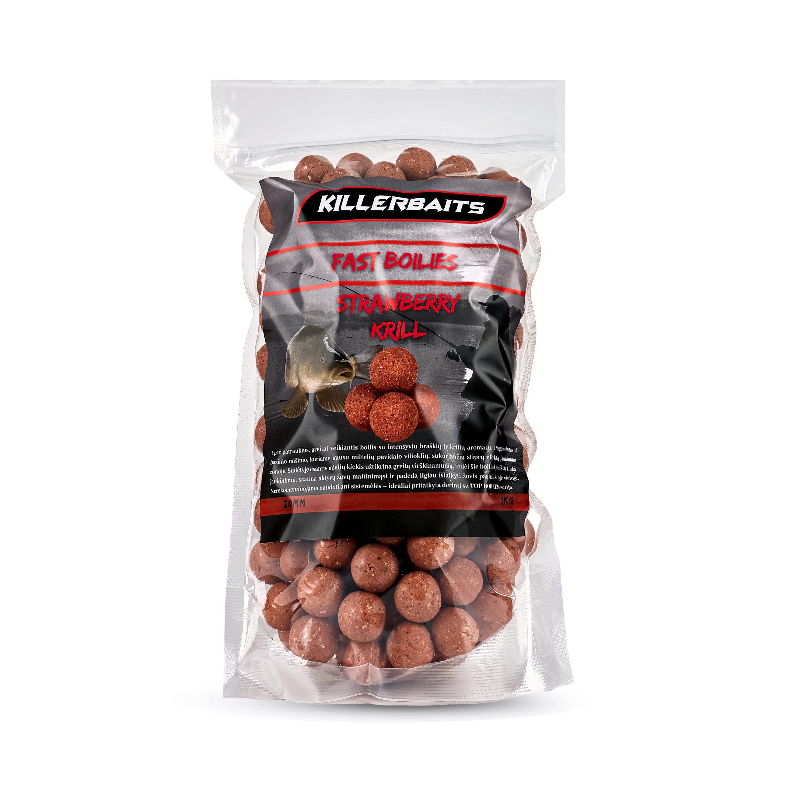 Ypač patrauklūs ir greitai veikiantys boiliai, išsiskiriantys saldžiu braškės ir natūraliu krilio aromatų deriniu. Sukurti ant kokybiško bazinio mišinio, praturtinto miltelių pavidalo atraktantais, šie boiliai puikiai tinka naudoti tiek su stipriomis jaukinimo masėmis, tiek atskirai. Sudėtyje esančios mielės užtikrina greitą virškinamumą, todėl jaukas pradeda veikti beveik iškart.